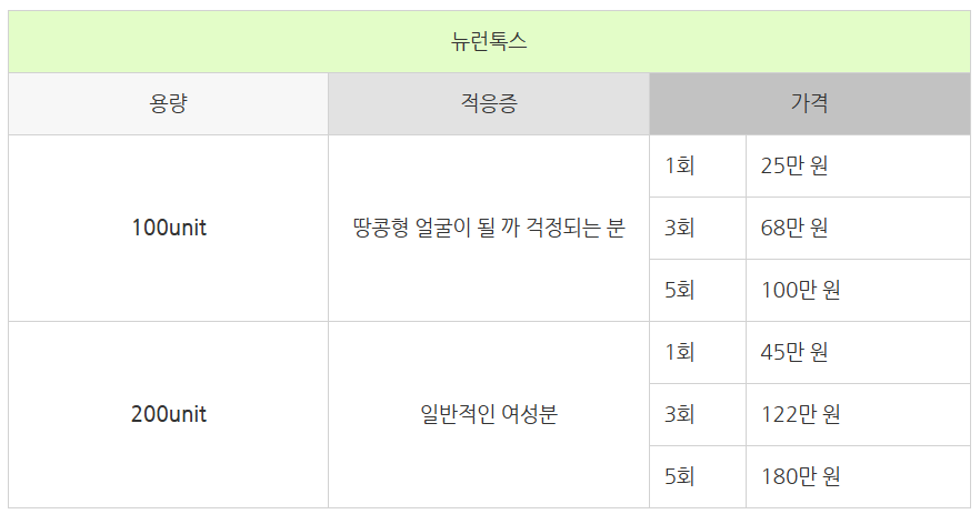 이갈이 보톡스 용량은 달라질 수 있습니다.